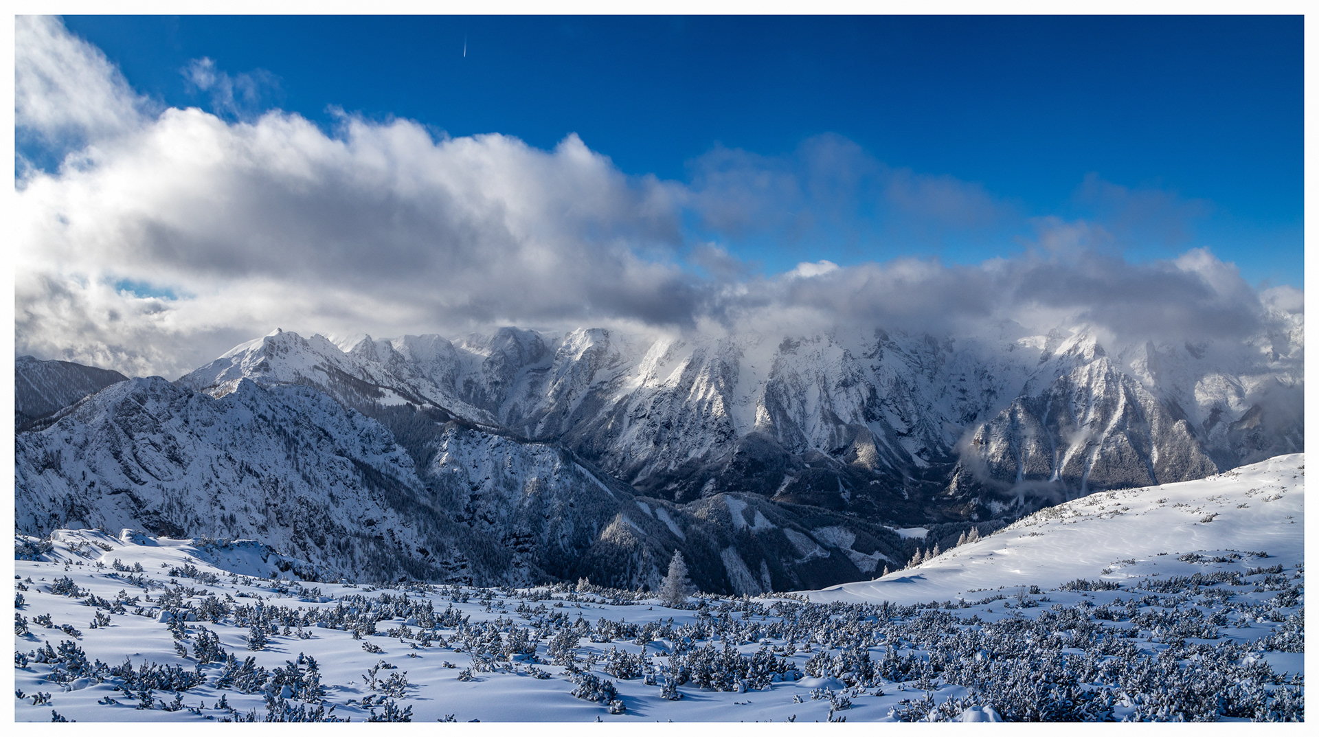 The Austrian Alps in Winter, crisp snow, clear blue sky, gluwein and schnitzel.